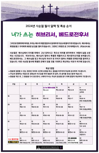 2024 사순절 필사 달력및 특송 순서